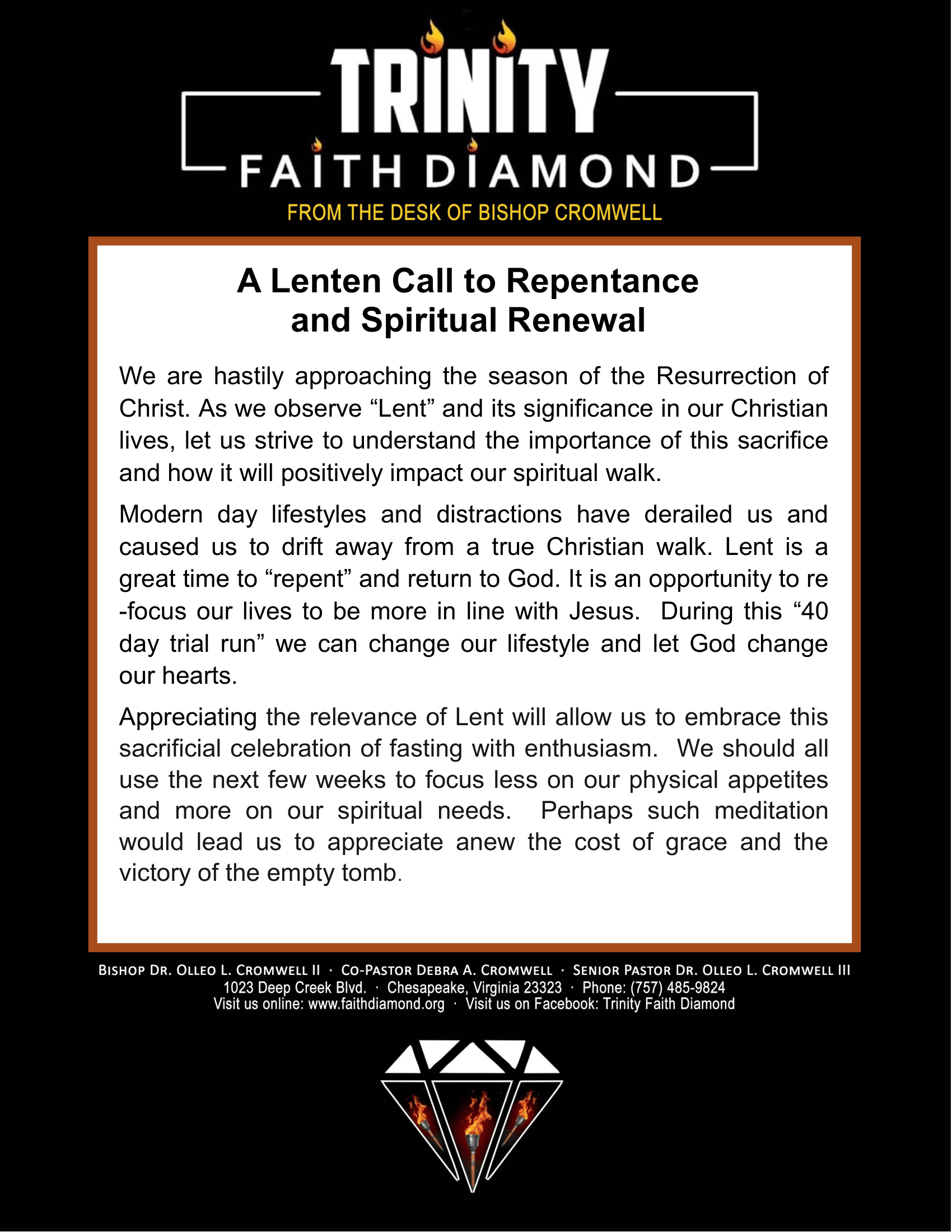 Monthly Message From Bishop